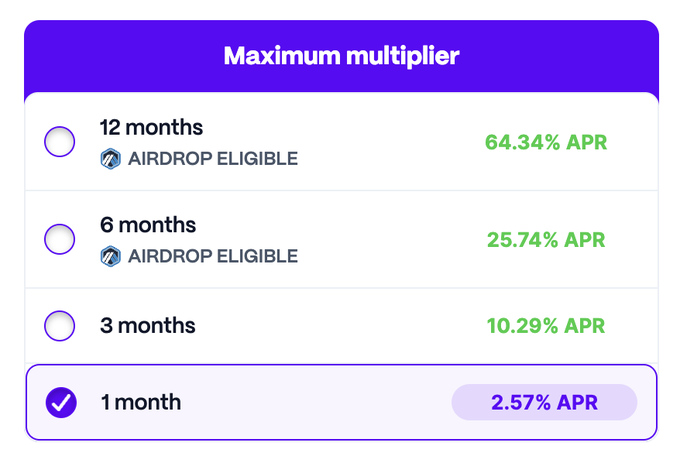 这样也给 RDNT 带来了比较好的持续性,毕竟你在挖 RDNT 矿的时候,其实你也在为 RDNT 提供长期流动性 毕竟 dLP 是有锁仓时间要求的,而且锁得越长 APR 越高。