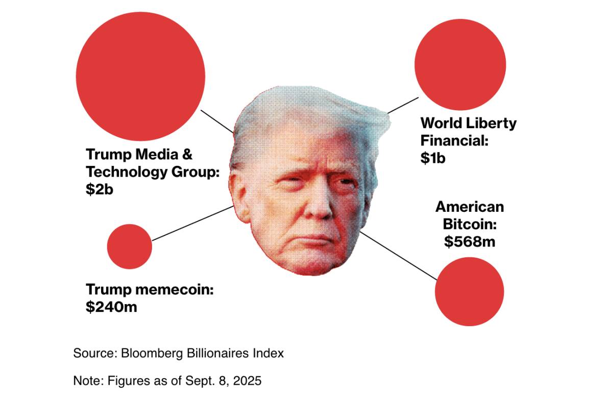 特朗普的加密财富,来源:《彭博亿万富翁指数》,数据截至 2025 年 9 月 8 日