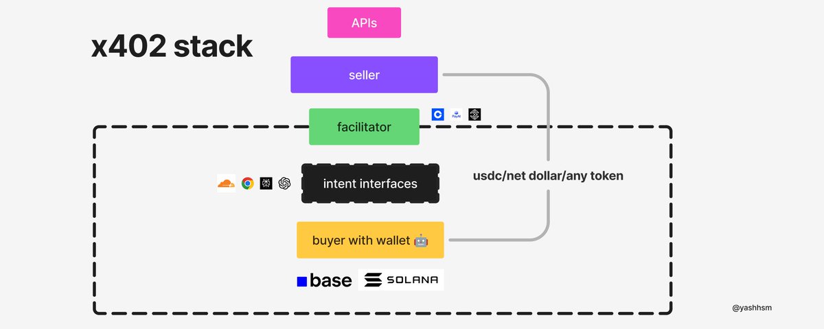 掌控流量入口和用户接口的一方(以及资产 / 公链)将在 x402 生态中获得最大价值。这就是 Coinbase 全力推进的原因,它掌握了端到端的全技术栈 )