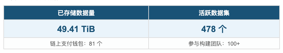 自 2025 年 11 月测试网发布以来,已有超过 100 个开发团队在 FOC 上开展构建,涵盖 AI Agent、去中心化前端、计算流程与数据索引等方向。主网上线初期,平台已累计存储 49.41 TiB 数据,活跃数据集 478 个。
