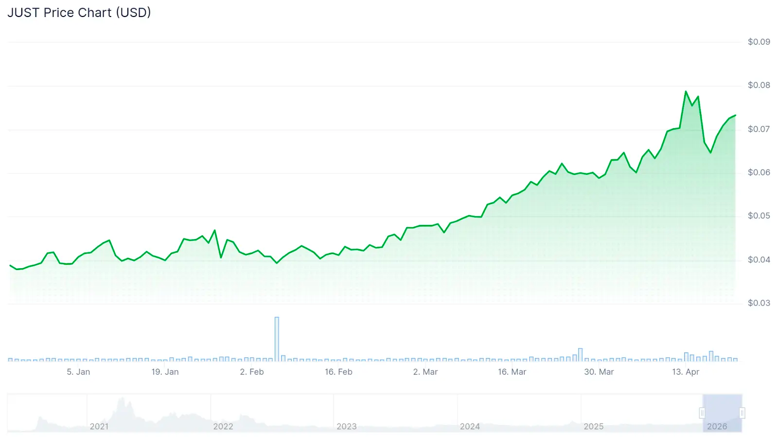 随着《JST 2026 年第一季度报告》正式发布,JST 再次向市场释放出强烈的长期价值信号。截至 4月 16 日,JST 已完成第三轮回购销毁,累计回购销毁金额超 6002 万美元。这一持续加码的动作,不仅直观验证了 JUST 生态卓越的造血能力,更标志着 JST 正式迈入常态化的结构性通缩新阶段。
