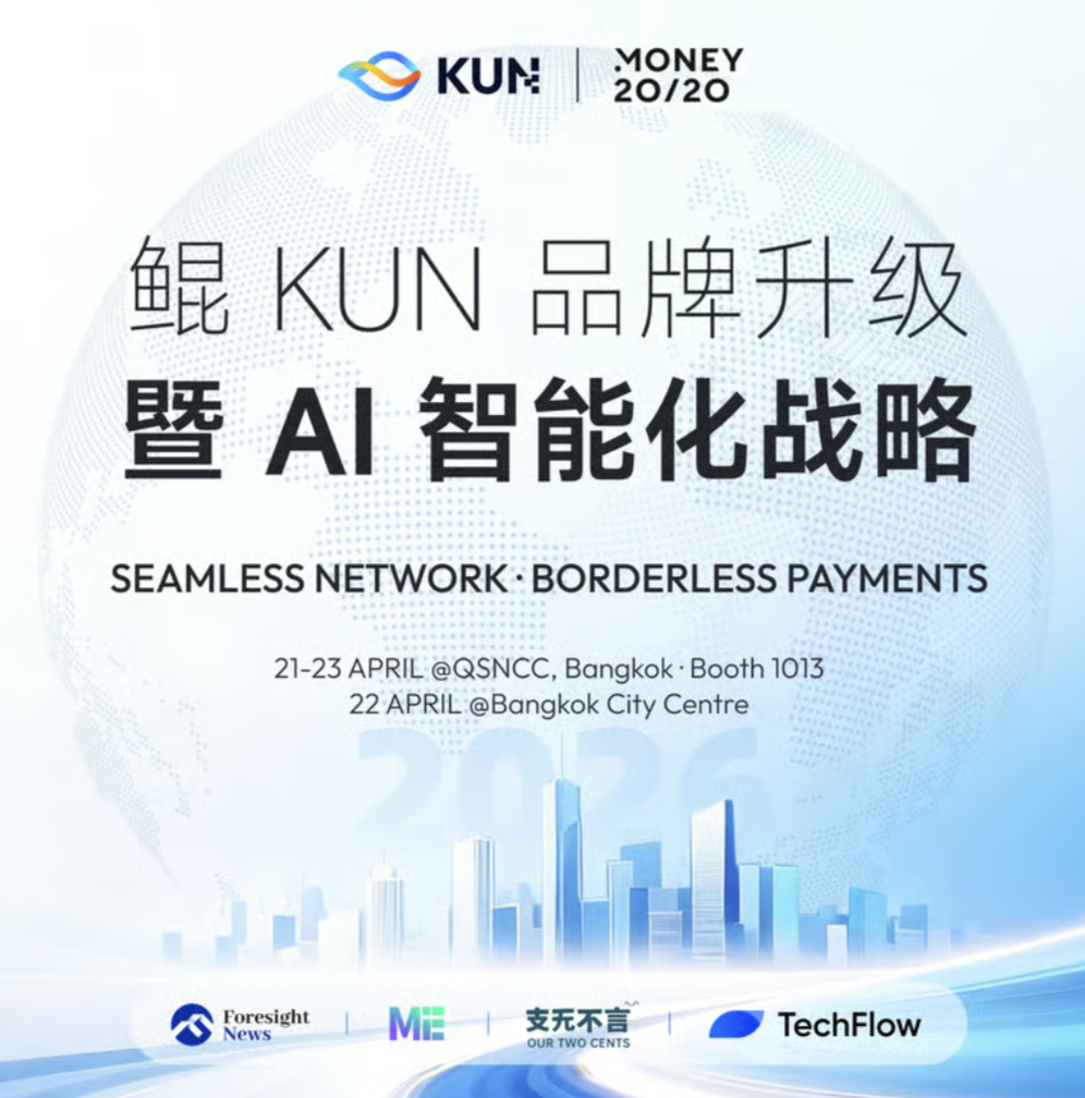 作为可信的行业数字支付专家,鲲 KUN 诚邀您在 Money20/20 Asia 期间相聚曼谷。我们将正式官宣 “1-1-4-6” 战略,展示如何以 AI-Powered 的全域资金流动网络缝合 Web2 与 Web3 的价值断层。