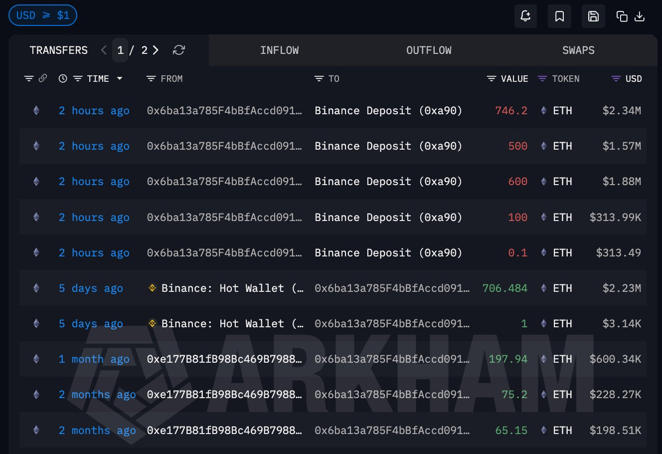 深潮 TechFlow 消息,1 月 13 日,据链上分析师 Ai姨(@ai_9684xtpa)监测,地址 0x6ba…78468 已清仓价值 610 万美元的以太坊(ETH)。该地址于 2025 年 11 月 17 日至 2026 年 1 月 8 日期间以均价 3162.77 美元建仓 1946 枚 ETH,并于 2 小时前将全部资产充值至币安交易所,疑似已全部卖出。充值时 ETH 价格为 3134.32 美元,该操作使该地址在持仓三个月期间产生约 5.5 万美元亏损。