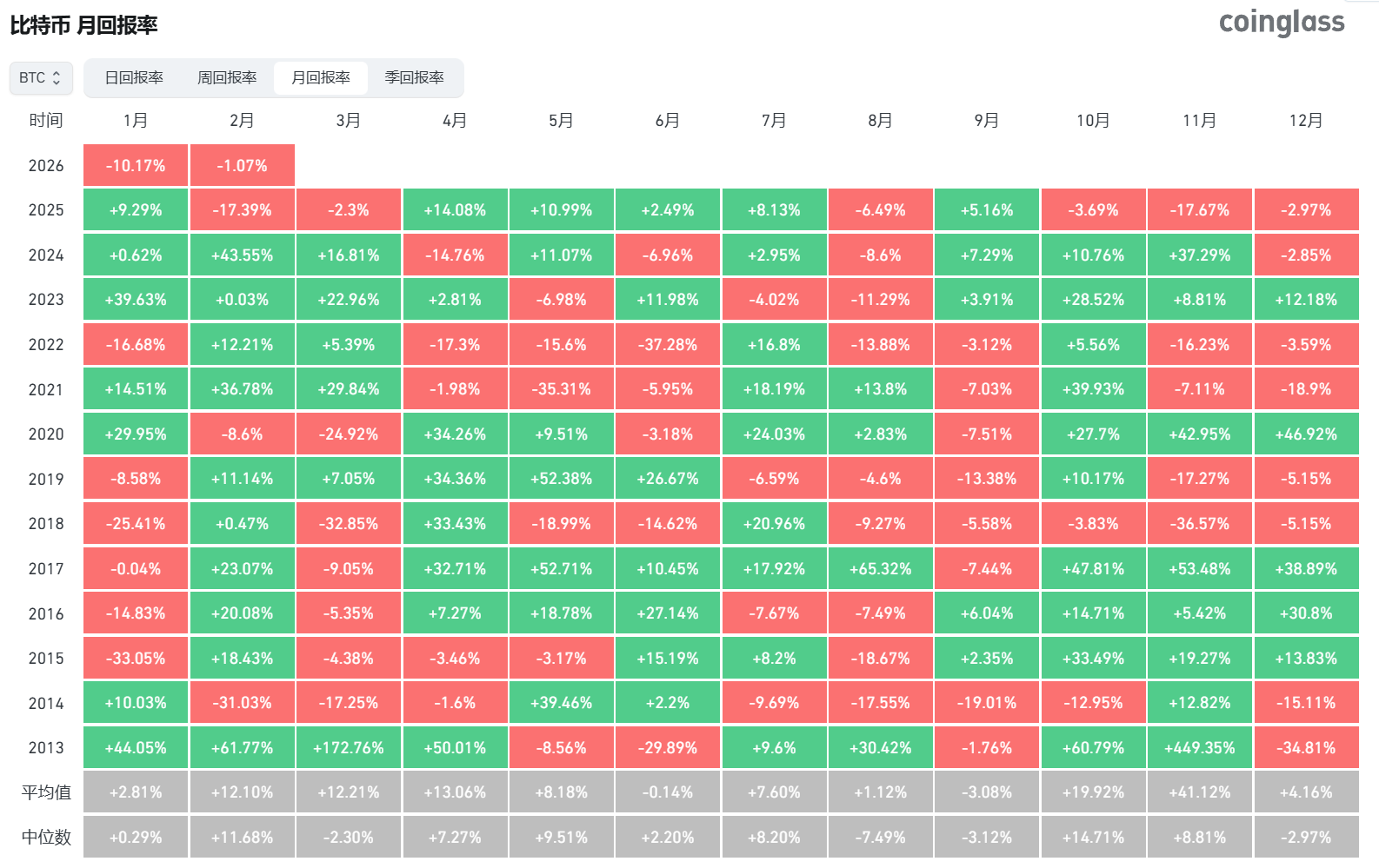 深潮 TechFlow 消息,2 月 1 日,据 Coinglass 数据,比特币和以太坊的历史 2 月平均回报率分别为 +12.10%和 +9.95%。