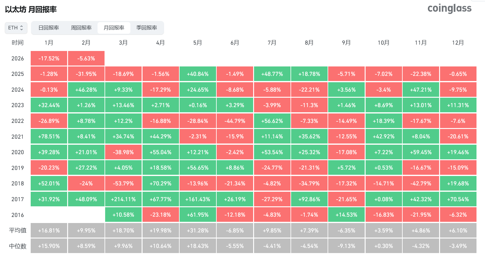 以太坊过去 9 年中有 7 个年度的 2 月回报率为正(分别是 2017、2019、2020、2021、2022、2023 和 2024)。