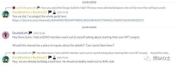 2021年11月,BanklessDAO诞生的第6个月,就有了1500名正式会员以及另外几千个持有guest pass的成员。这些人或多或少都在为DAO贡献。Discord服务器变得像现在上海疫情封控时候的小区团购群一样,各频道都充斥着大量信息。一天不看就跟不上节奏。