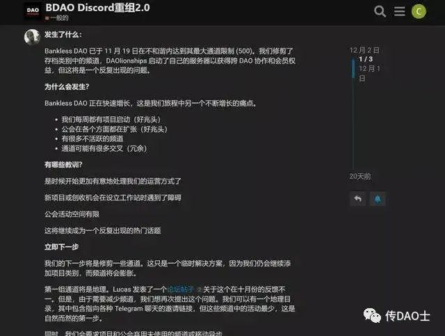 由于BanklessDAO长得太快,要出现大公司病了。因为组织规模越大,决策往往就会变得越慢,显得越官僚。一旦出现官僚主义的繁文缛节,人们就会离开,把他们的想法带到其他地方,DAO就会失去人才。