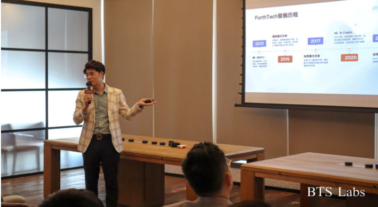 随后,ForthTech CEO Darren Chan 介绍了ForthTech团队于2017年进入加密交易市场,是专业从事加密量化交易的先行者。在策略研发、资料库处理、服务器建设与维护、IT实现、安全风控领域有较强经验。经历了两轮的牛熊行情后,于2021年正式公司化运营,主要提供量化交易、做市商、流动性提供等服务,运用AI演算法帮助客户安全稳定地实现数字资产的保值与增值。做为专业的数字资产技术服务机构,我们积极拥抱时代、引领行业变革。