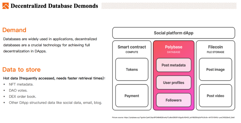 去中心化数据库适合用来存储访问频率高的热数据,存Dapp的非财务数据,比如: