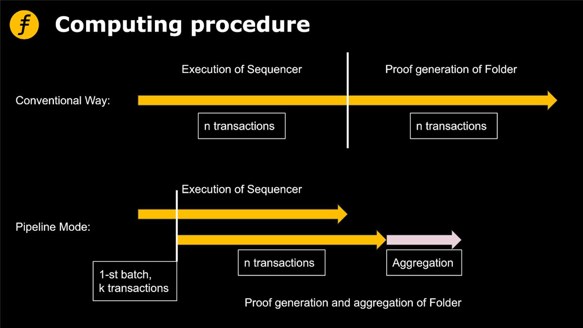 根据我们对零知识证明算法的基本了解(读者可以参考之前FOX的系列文章),Folder如果想要生成证明必须要得到输入以及执行完毕的结果,这就使得如果按照常规的方式进行,需要等待Sequencer将所有交易全都执行完毕再交给Folder。为了更加有效利用计算资源,我们希望让Sequencer在执行完一部分交易以后马上交给Folder进行证明生成。