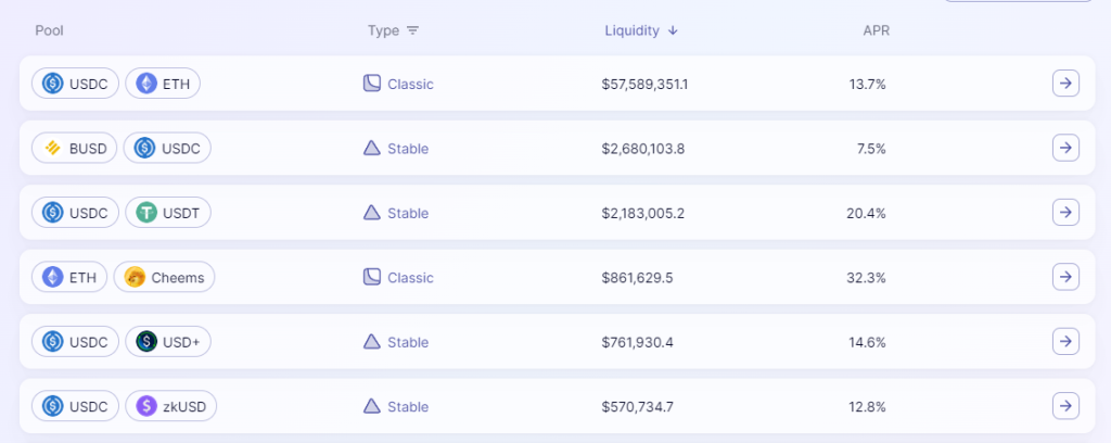 数据来源:Syncswap官方 时间:2023.6.9 制表:Mint Ventures