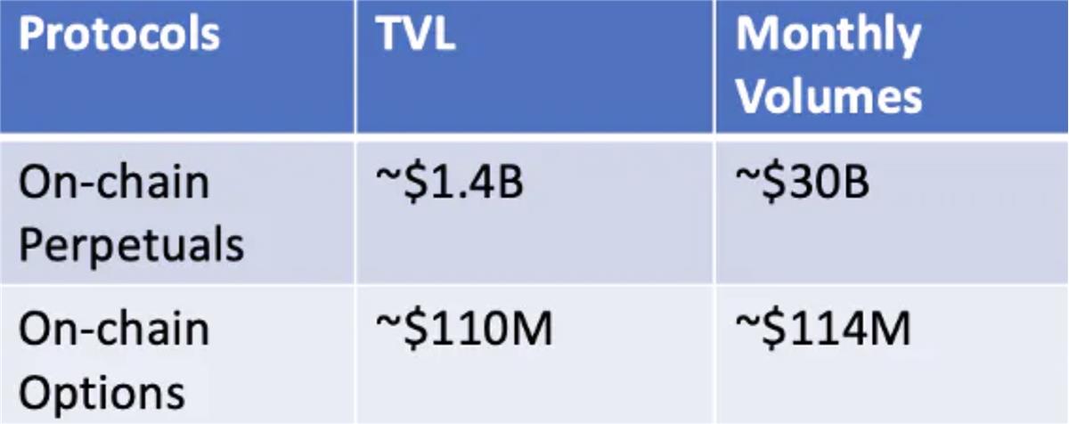 链上期权仅占去中心化金融衍生品交易量和总锁定价值(TVL)的一小部分。