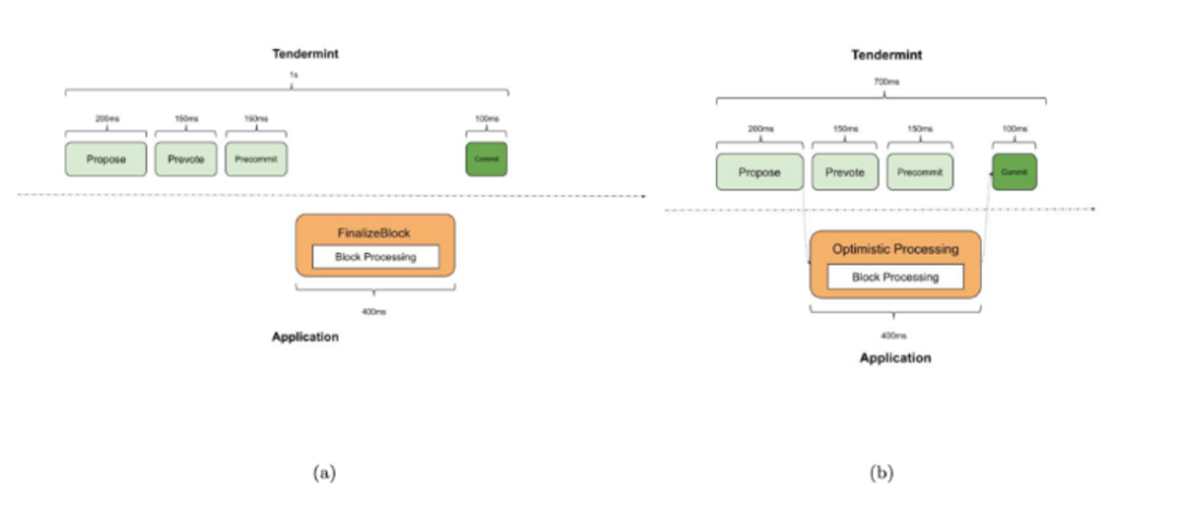 Sei 的第二个 turbo 运用的是乐观的区块生成机制。“乐观”一次表示的是默认大多数的区块提议者是不会出错。在乐观的假设下,validator在进行 prevote 和 precommit 的同时,可以同步处理区块数据,即先将 proposer 提议的区块数据写入缓存,如果该区块被验证通过则直接导入缓存数据即可,而不需串行等待 prevote 和 precommit 通过。Sei Network 通过上述 Twin-Turbo Consensus 实现了降低交易延迟,提高区块链性能的作用。