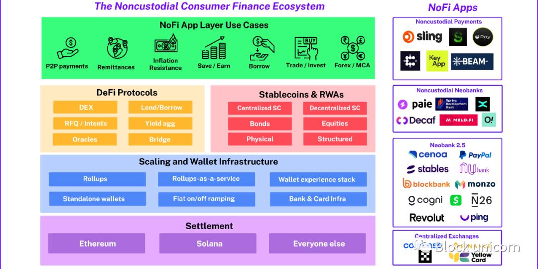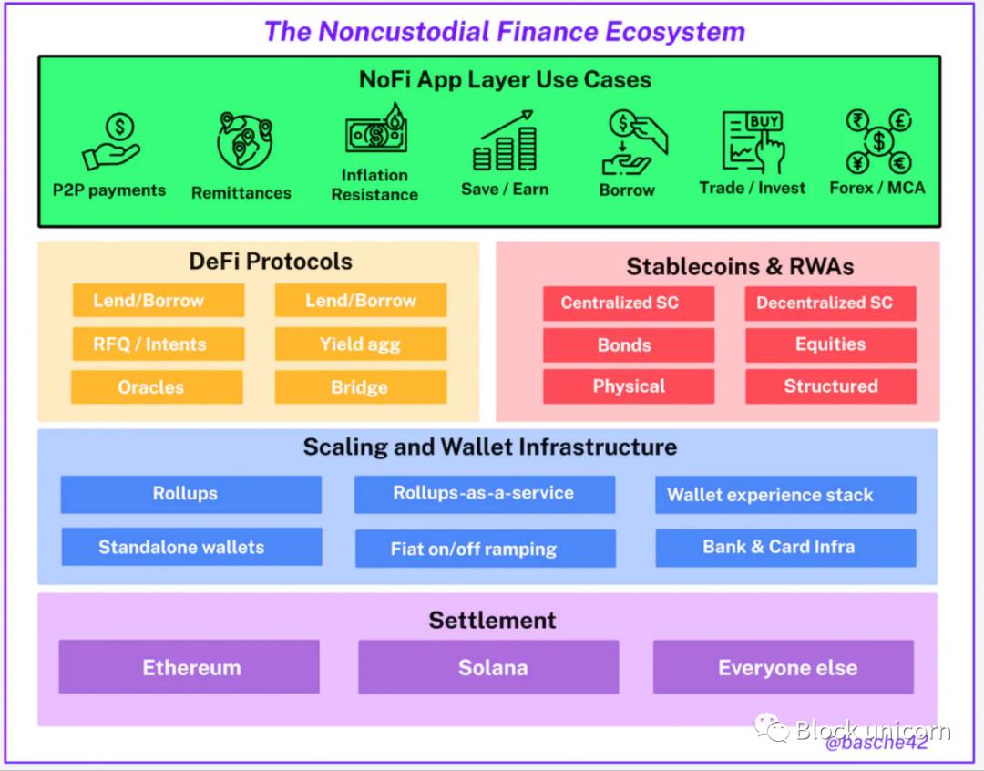 当然,在问题空间周围出现的同步进化,伴随着解决空间周围的同步进化。随着我们终于开始看到可以在大规模市场上合理竞争的 NoFi 应用程序,我们可以看到支撑不同方法的一些共同线索。让我们从高层次的结算层开始,一直到应用层,然后深入探讨一些关键的技术主题。