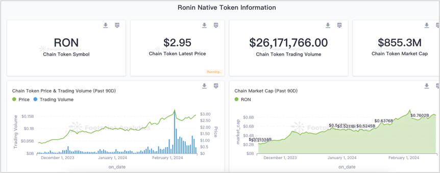 根据BlockBeats数据显示,Ronin Network的活跃地址在过去3个月内增长了3225%。最高曾在1月25日达到69.3万数据,其代币Ron价格也在过去的三个月涨幅超过了800%,目前价格为3.18$。那么,RoninNetwork究竟是什么?为何如此受到投资者的追捧?作为一家专注于革新游戏的专业区块链平台,RoninNetwork拥有哪些优势?让我们通过本文来一探究竟。