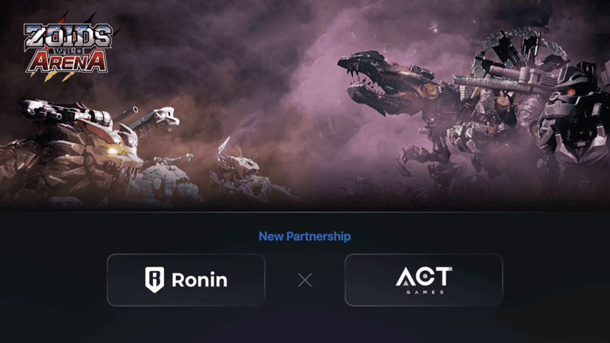 Zoids Wild Arena是由韩国知名游戏公司ACT Games开发的一款TCG游戏(集换式卡牌游戏),玩家可以收集Zoids系列机械生物卡牌,并进行1v1或3v3的对战。在2023年11月,Ronin的开发商SkyMavis与ACT Games合作,计划将ACT的所有游戏引入Ronin网络。Zoids Wild Arena是ACT Games旗下第一款迁移至Ronin的游戏。