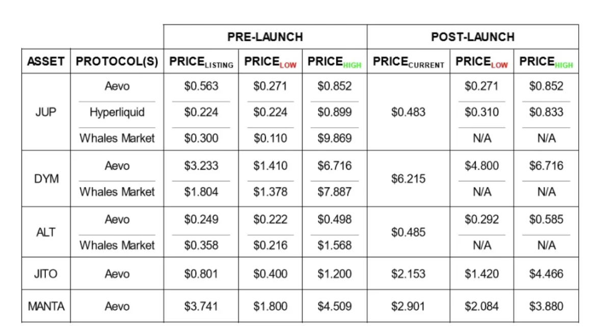 借助交易所 API 和历史数据,我们可以观察所有曾经在 pre-market 交易的资产的价格表现,并了解它们在正式上线后的表现。