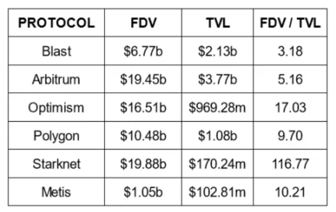 从 L2 的定价方式来看,Blast 目前在纸面上似乎被低估了,但在试图得出明确的结论时需要考虑更多信息。不幸的是,除了 TVL 之外,关于其链上现状的信息很少,这使得评估过程变得困难。