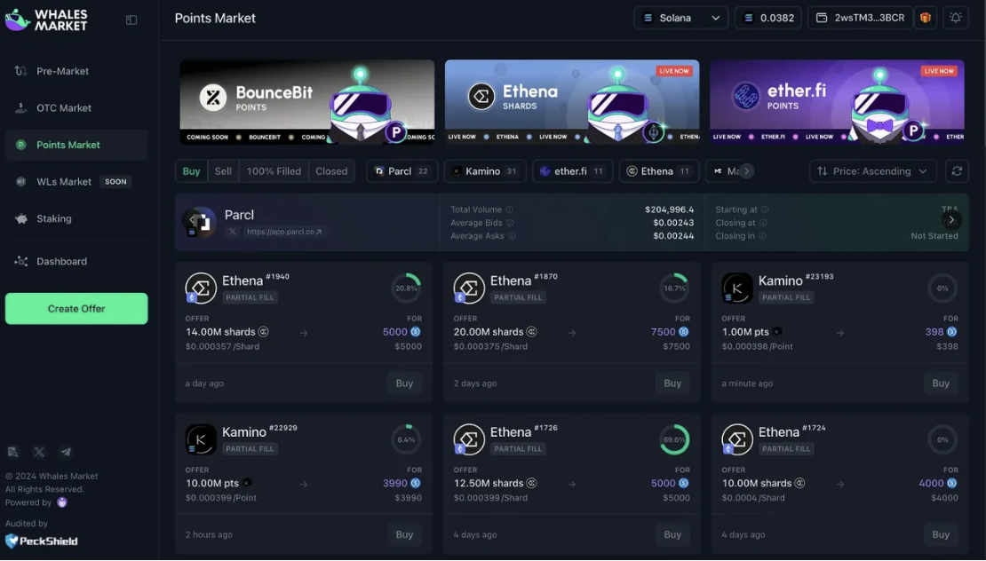 积分现在可以在去中心化的场外交易平台 Whales Market 上进行交易。