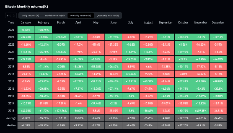 虽然 BTC 在 2 月以高回报收尾,3 月也同样看涨,但情况并非总是如此。