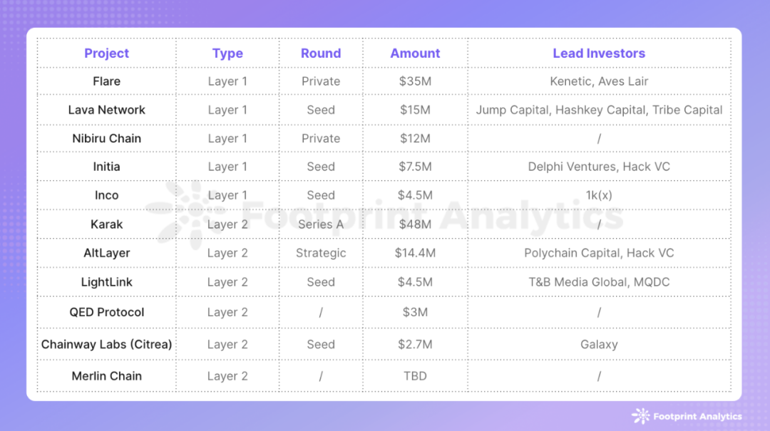在 Layer 1 领域,Flare 在由 Kenetic 和 Aves Lair 领投的私募轮融资中获得了 3,500 万美元的投资。Flare 将自己定位为一个以数据为中心, 专注于推动智能合约协议和定价预言机发展的网络。