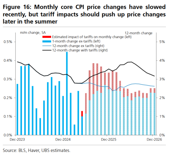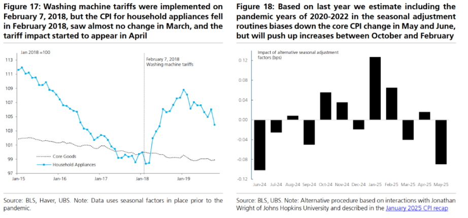 瑞银预计直到 7 月 CPI 数据(8 月发布)才会看到关税对主要通胀指标的显著影响。