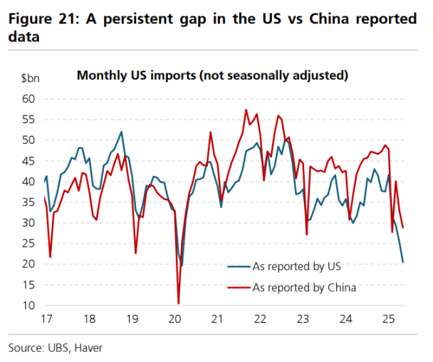 美国和中国报告的贸易数据存在持续差距,集装箱运输数据与官方贸易数据之间也存在分歧。