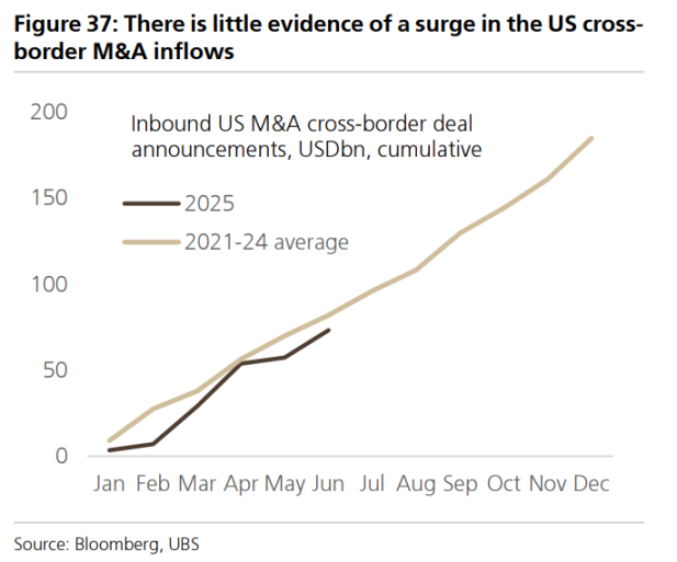 瑞银称,迄今为止,在并购公告数据中没有看到明确证据来验证联邦政府关于超过 10 万亿美元 FDI 投资承诺流入美国的说法。
