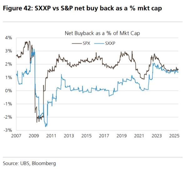 欧洲的总收益率(股息加回购)现为 4.4%,而美国为 2.8%。