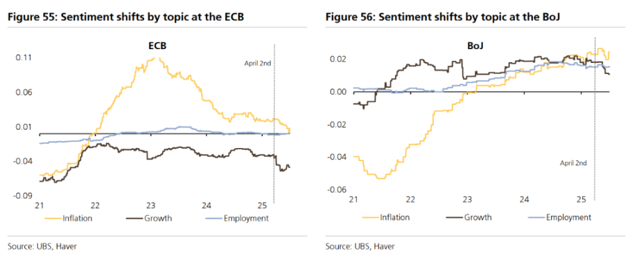 瑞银的深度分析模型显示,G3 央行中欧央行情绪转向最为鸽派,日本央行开始担忧增长。美联储则面临两难境地。