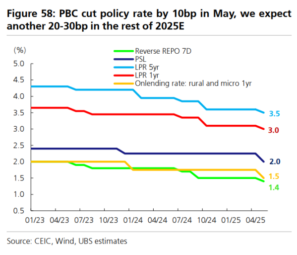 此外,瑞银预计还会有 20-30 个基点的政策利率下调。