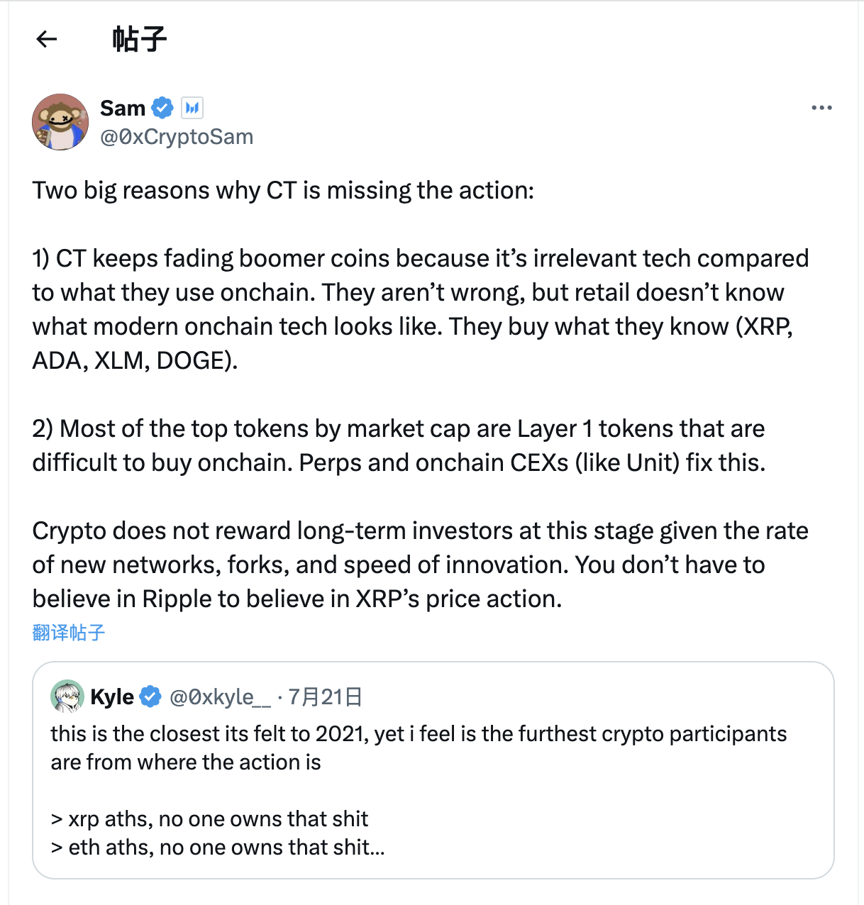 Messari分析师 Sam 在x表示,加密推特总是看衰那些“老年币”,因为和他们链上用的新技术相比,这些币已经过时了。他们的判断没错,但普通散户其实并不了解什么是现代链上技术,只会买他们熟悉的币(比如XRP、ADAXLM、DOGE)。