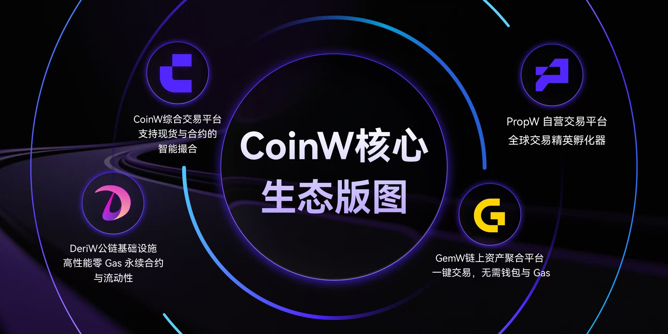 在完成全栈融合升级后,CoinW 所投资与布局的生态系统由四大核心板块组成。各板块在功能与服务上各自形成完备体系,能够精准覆盖不同类型用户在交易与资产管理上的多元需求。