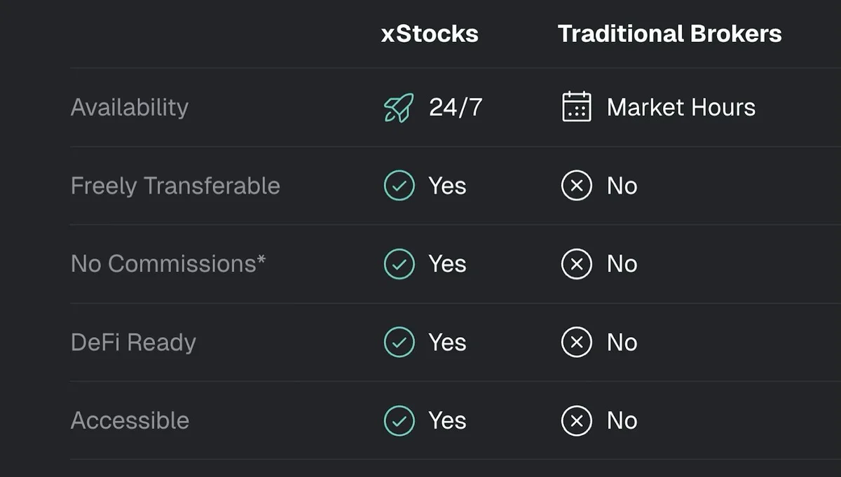 xStocks革新了传统股票交易和经纪模式,为用户带来诸多优势。它将传统股权的投资门槛大幅降低,使全球用户无需经纪商即可进入市场。这一变革意义重大,因为像指数基金和股票投资这样的经典财富路径,过去一直被特定地区所垄断。