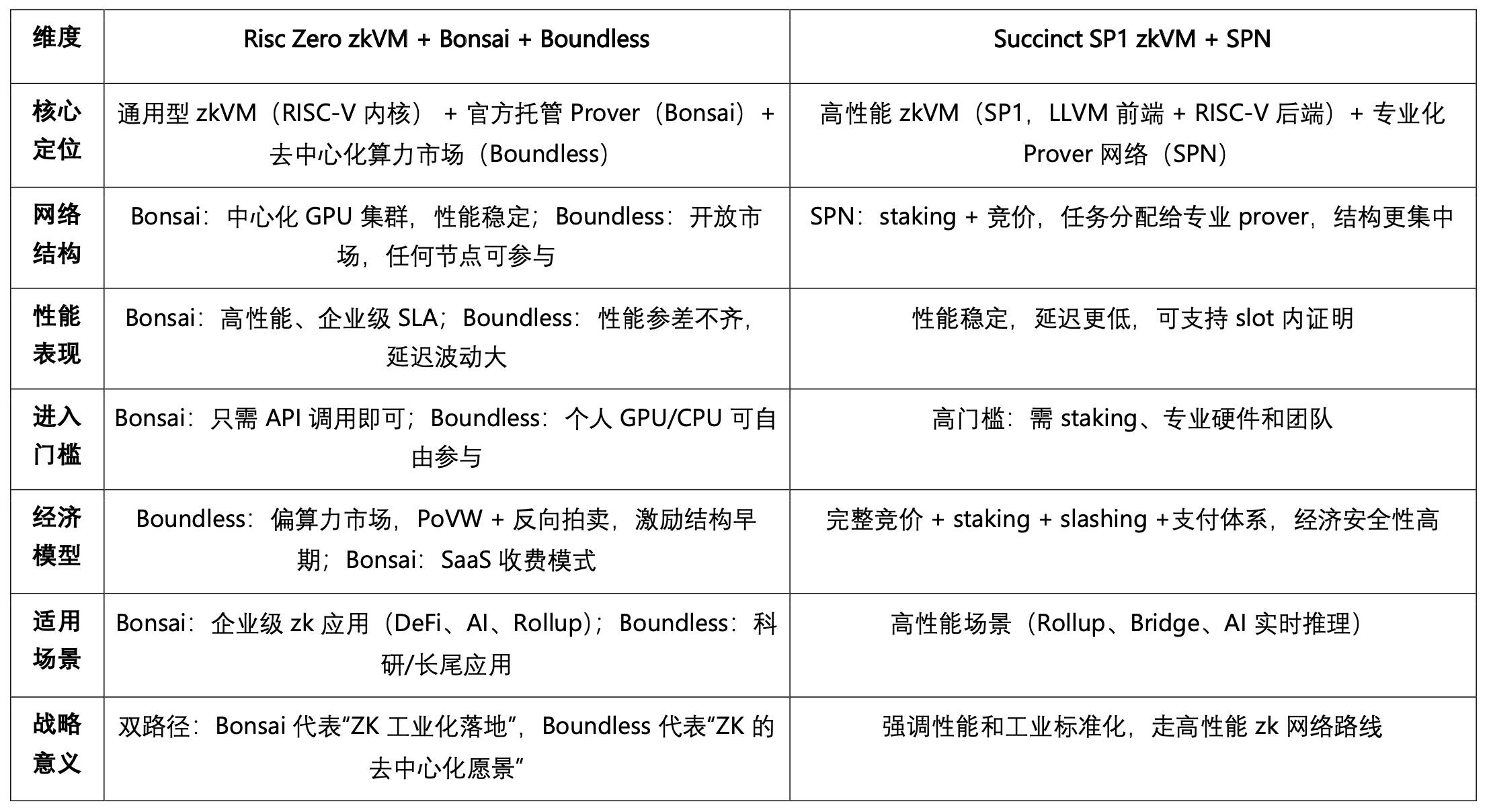 Risc Zero(zkVM + Bonsai + Boundless) 与 Succinct (SP1 zkVM + SPN) 区别与定位