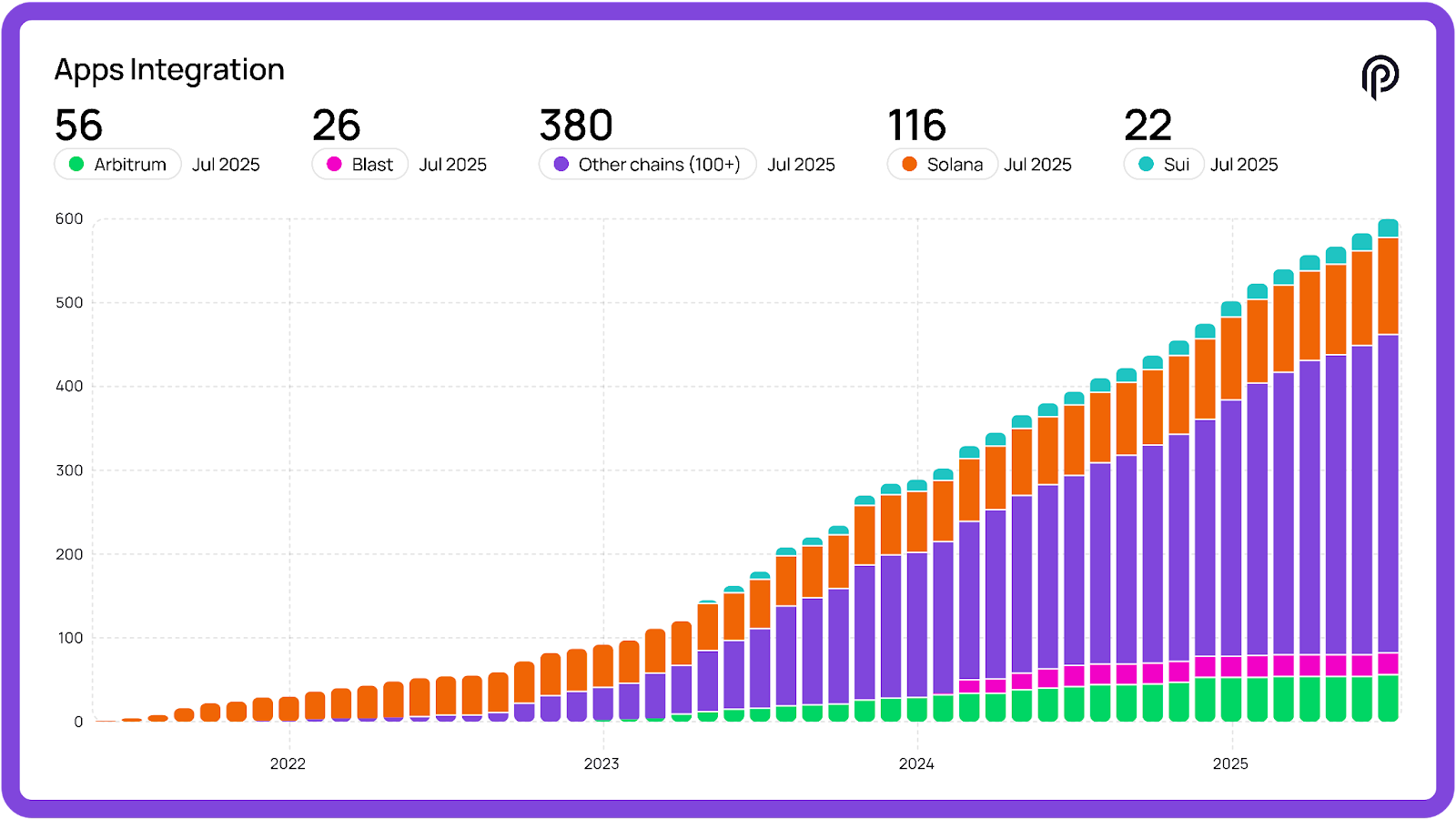 Pyth 之所以采用区块链技术去构建“真实来源”,是因为既有系统无法在无许可环境中提供可信数据。Pyth 最初只是在一组交易公司与交易所之间做数据聚合,如今已发展为数以百计的机构,把其专有市场数据发布到同一个网络上。累计成交量已超 1.6 万亿美元,在 DeFi 衍生品领域拥有 60%+ 的市场份额,完成 600+ 集成,并与美国商务部建立合作。Pyth 的分发覆盖度已将其置于最具影响力的协议之列。