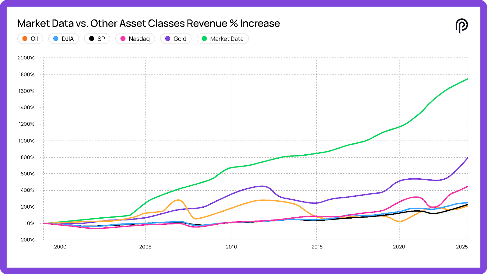 过去 25 年市场数据成本的上涨幅度,远远跑赢其他主要资产类别。