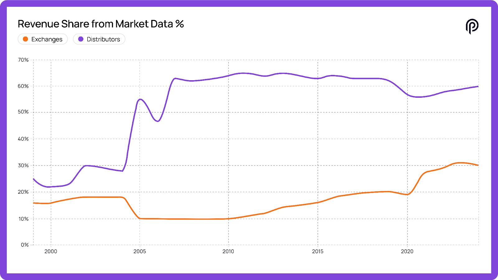 当下的机构仍受制于遗留系统,不得不向 Bloomberg、Refinitiv 等中介每年支付数十亿美元费用。而这些聚合商又从各类交易所获取数据——这些交易所本身在地理、资产类别与交易场所层面呈现孤岛式结构,数据割裂。结果就是:即便其他领域已广泛数字化,市场数据生态仍然是守旧且碎片化的模式。