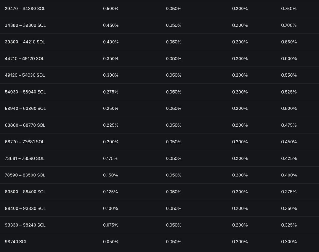创作者手续费会随代币市值增长动态调整:市值在 1000 万 - 1100 万美元区间时,手续费浮动范围为 0.3%-0.9%;当市值接近 2000 万美元时,手续费会逐渐降至 0.05%(仍按 SOL 约 200 美元计算)。