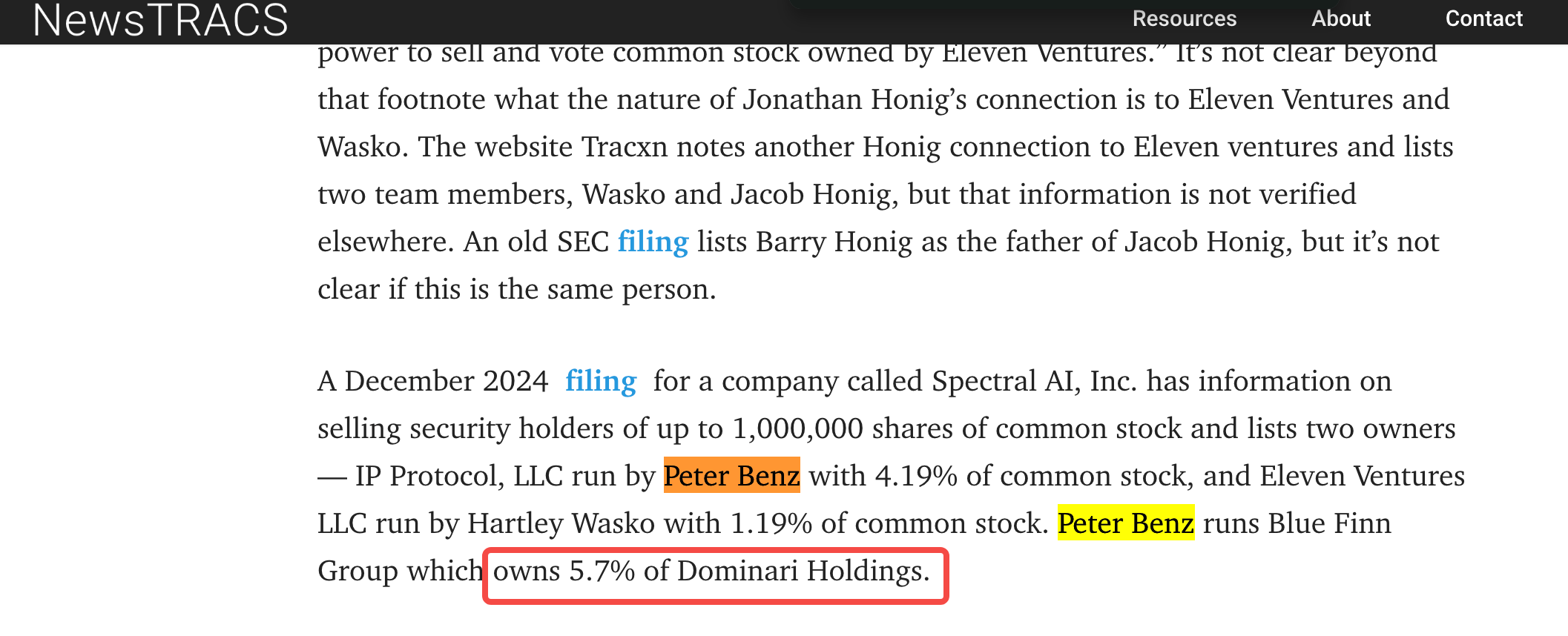 2025 年 3 月,一个名叫 Peter Benz 的投资者通过 Blue Finn Group 成为 Dominari 5.7%的大股东。有意思的是,Benz 曾担任多家公司董事,其中包括 IDI, Inc.。这家公司的高管 Michael Brauser 和 Philip Frost 后来被 SEC 指控参与 2700 万美元的股票欺诈案。
