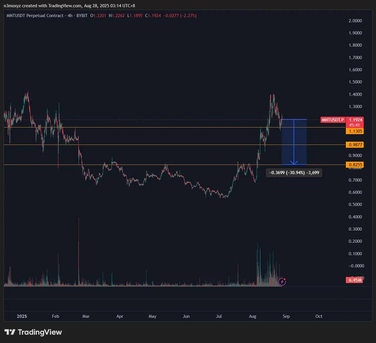 • 执行风险:回购与销毁尚未获得批准。如果没有这一点,MNT 仍只是一个抵押/费用代币。