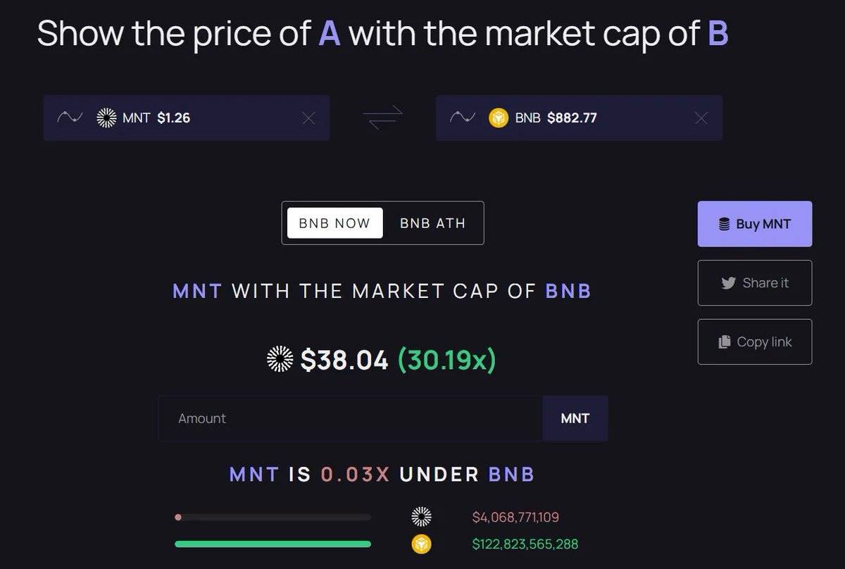 4、继续设想:Bybit 增长到与 Binance 相同规模,MNT 的市值等于 BNB 的市值
