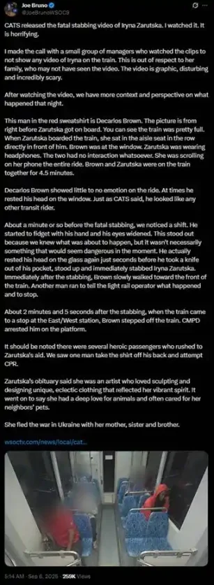 但此时,Iryna Zarutska 被害的监控画面还没有被披露,这是案件发生到代币部署中间出现了一段「真空期」的原因。案发现场的监控录像于北京时间的 9 月 6 日被披露,我们随之可以在 Twitter 上看到相关的讨论。