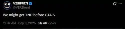 「我们可能会见到 TND 发生在 GTA 6 发布之前」