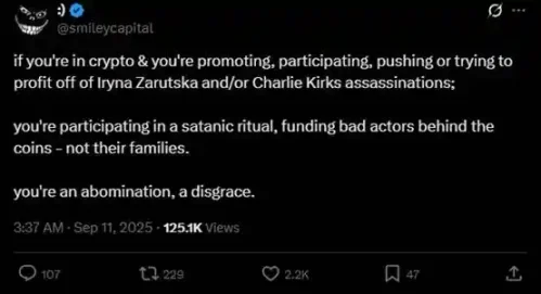 「如果你推销、发币或是试图通过炒作在 Iryna 和 Charlie 遇害案上赚取利润,那么你就是个非常羞耻且令人憎恨的人」,这条推文收获了超过 2200 次点赞,类似的推文还有很多