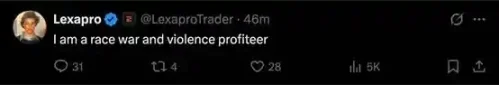 Lexapro 同样受到指责,因为他发推文表示,「我是种族冲突和暴力的(交易)获利者」。Lexapro 同样已经删除了这条推文。从下面的截图中可以看到,Lexapro 之前还挂着 meme 币交易 App Padre 的附属勋章,而目前 Padre 也已经将 Lexapro 从附属账号中移除。