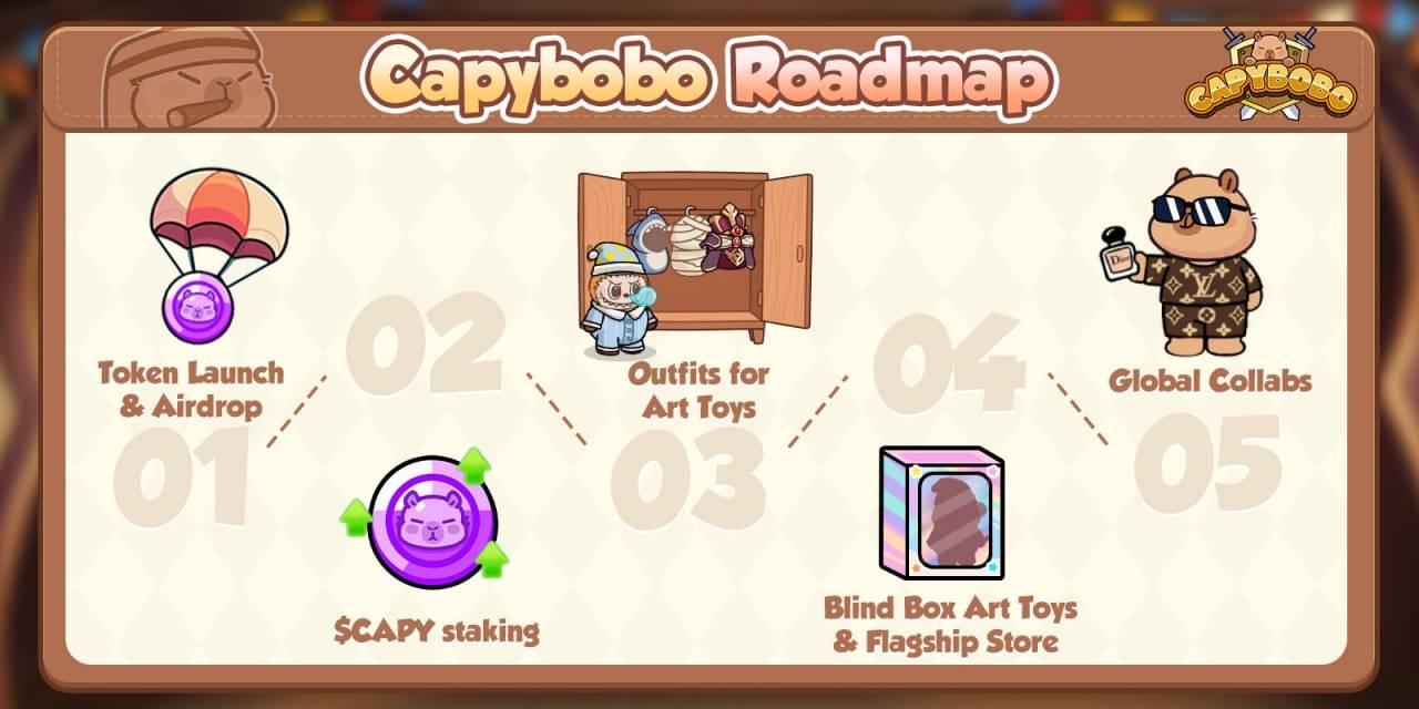 白皮书规划显示,项目的长远目标是构建完整的潮玩生态系统。除了线上NFT和兑换服务外,Capybobo计划在全球主要城市开设旗舰实体店,销售限量版娃衣、独家盲盒系列以及周边收藏品。这些线下空间将成为潮玩爱好者的聚集地,同时也是数字与实体收藏品的展示和交易中心。