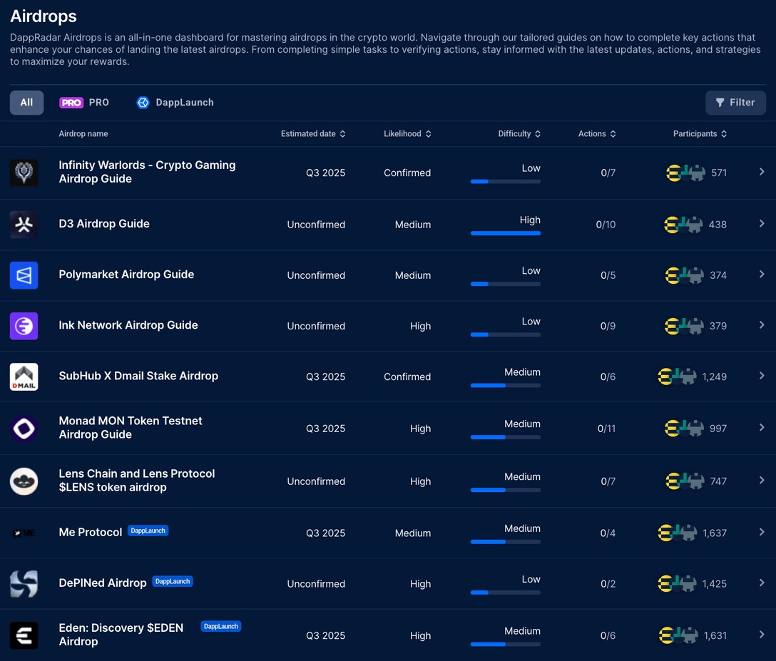 然而,它们也伴随着挑战:空投羊毛党(Airdrop Farming)、立即抛售和留存困境。不过,截至 2025 年,空投仍然是 dapp 行业中最有效、尽管不完美,的营销武器之一。