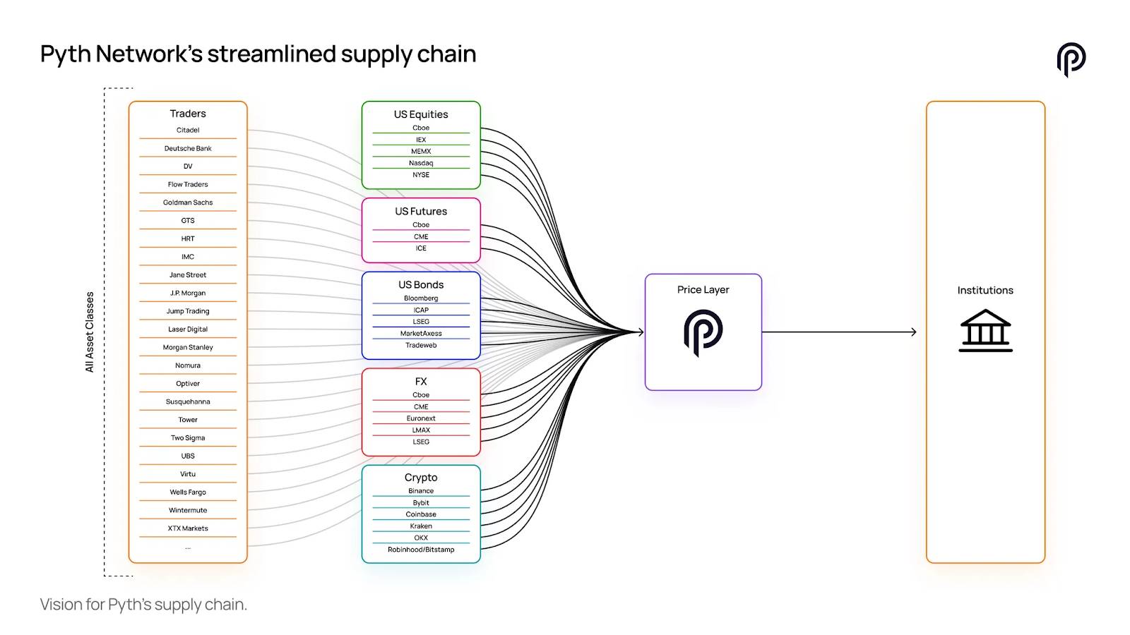 Pyth 能够提供传统供应商无法提供的功能,这依赖于其结构创新。Pyth Network 并非又一个重新包装下游数据流的聚合器,而是从根本上重新构建了全球范围内市场数据的捕获、验证和分发方式。
