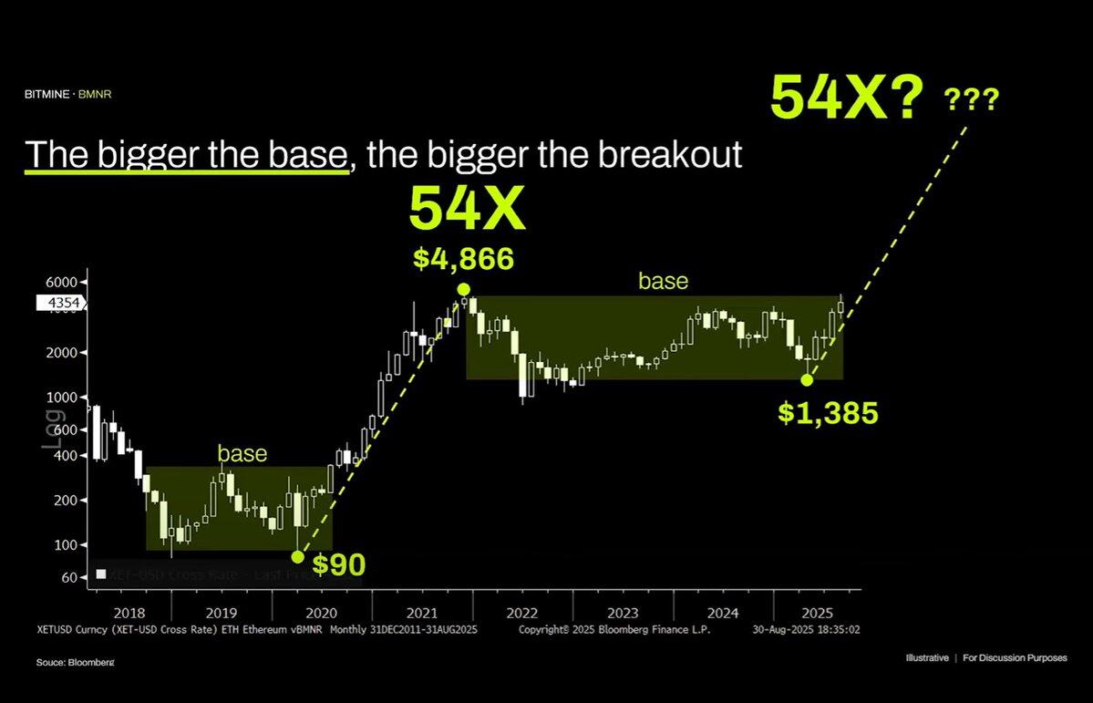 编者按:自从 Tom Lee 成为 BitMine 董事会主席并推动该 DAT 持续买入 ETH 以来,Tom Lee 就已成为了业界头号 ETH 多头。在近期的各种公开亮相中,Tom Lee 总是以各种逻辑在反复强调 ETH 的增长预期,甚至曾高调喊出 ETH 的公允价值应该在 6 万美元。
